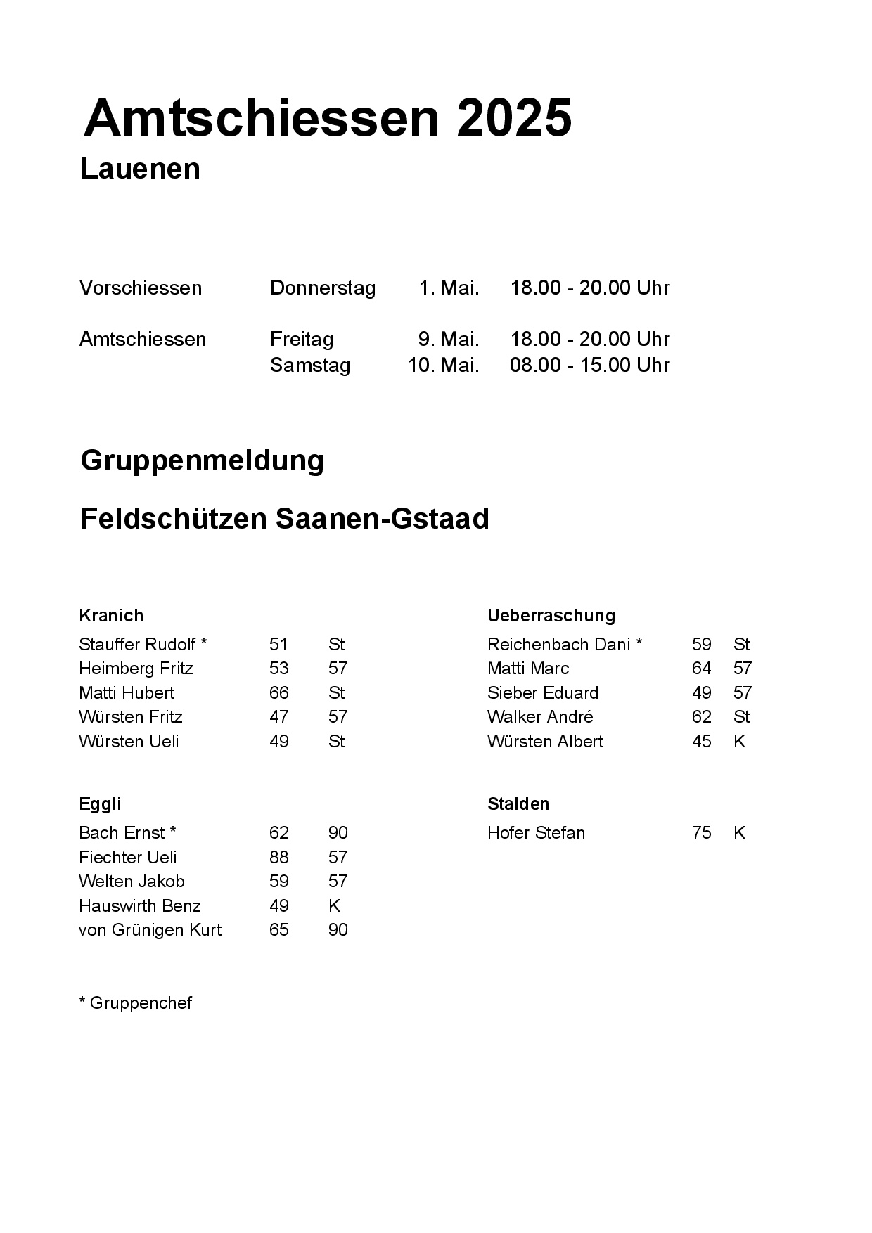 Der beliebte Wettkampf der Schützenvereine Lauenen, Gsteig, Saanen-Gstaad und Saanenmöser wird jeweils von den Feldschützen Lauenen durchgeführt.